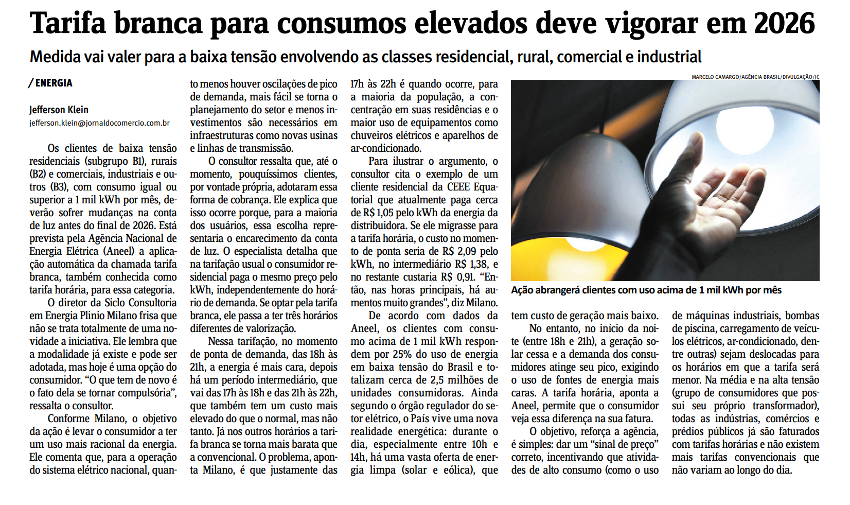 Tarifa branca oportuniza novo modelo de consumo